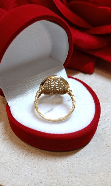 Przedmiotem sprzedaży jest pierścionek, wykonany z 14-karatowego (p.585), żółtego złota.