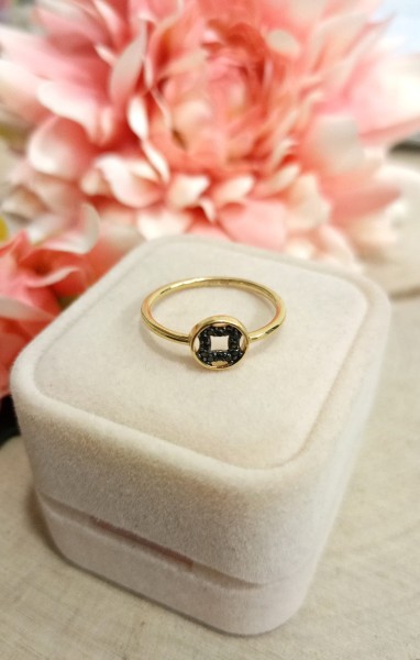 Złoty pierścionek czarne cyrkonie 1,45g/p.585 al.14