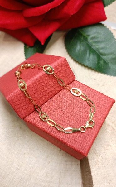 Przedmiotem sprzedaży jest delikatna bransoletka wykonana z 14-karatowego (p.585) żółtego złota.