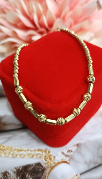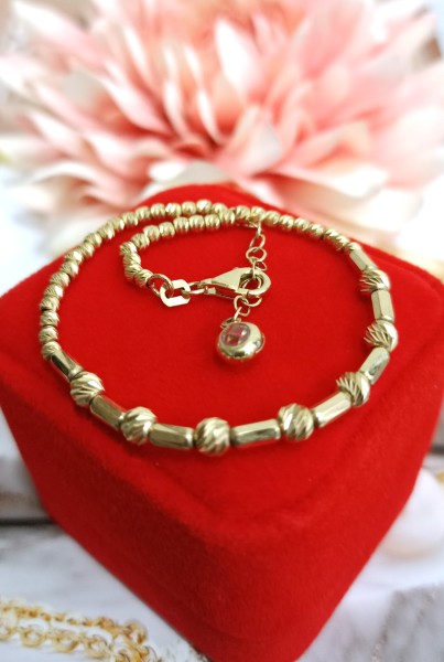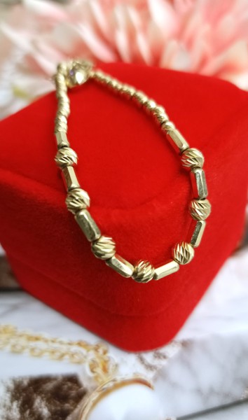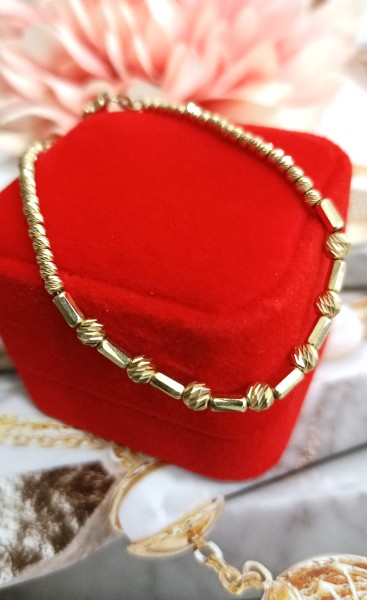 Przedmiotem sprzedaży jest bransoletka z frezowanymi kulkami ,wykonana z 14-karatowego (p.585) żółtego złota.