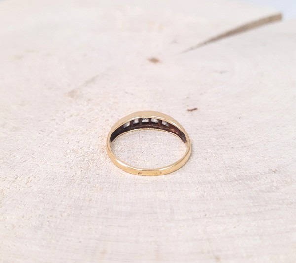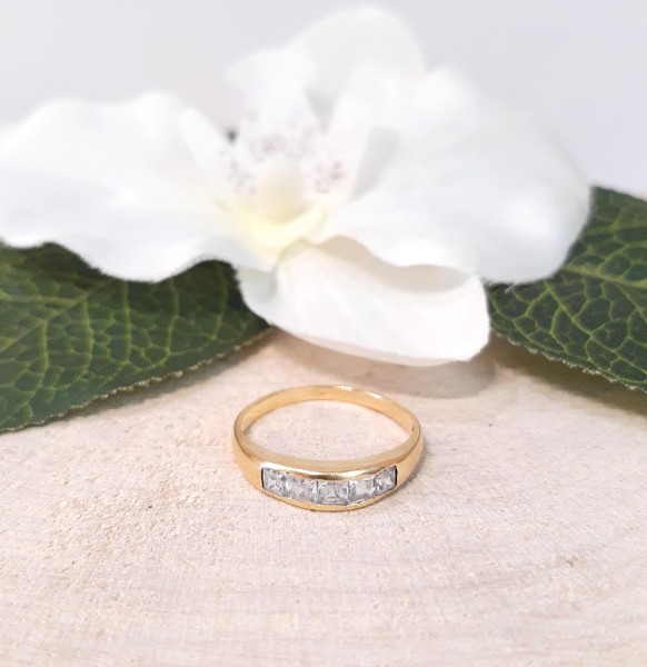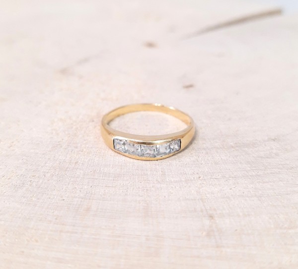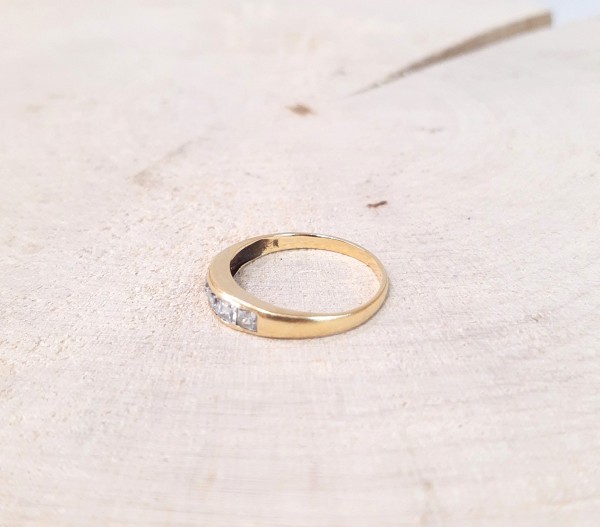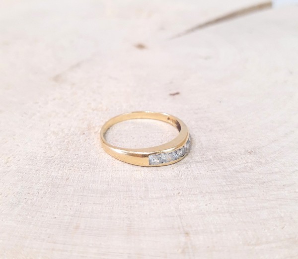 Przedmiotem sprzedaży jest pierścionek z cyrkoniami wykonany z 14-karatowego,(p.585) żółtego złota.
