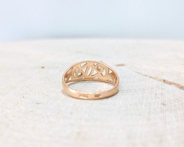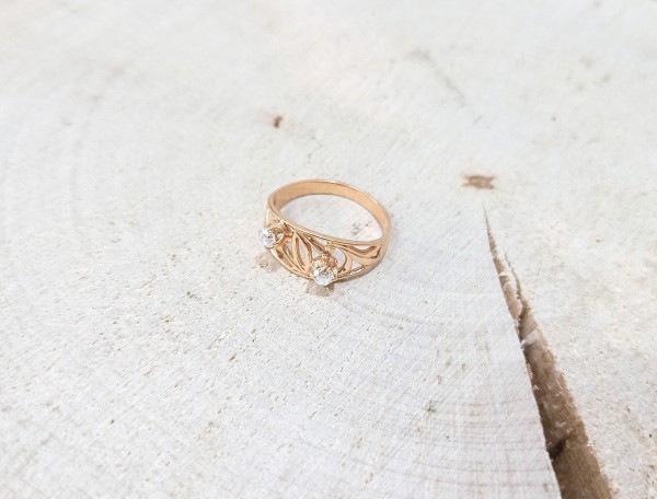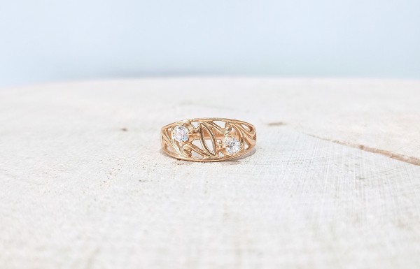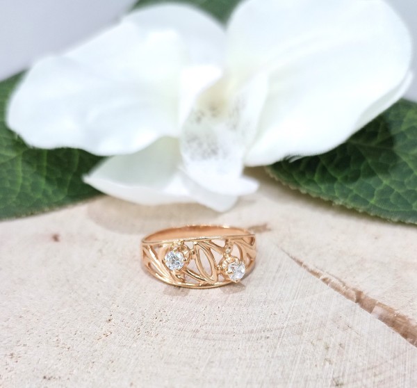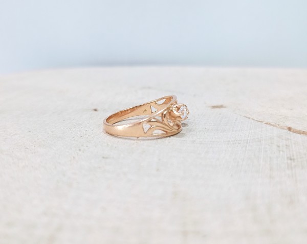 Przedmiotem sprzedaży jest pierścionek z cyrkoniami wykonany z 14-karatowego(p.583),różowego złota.