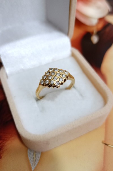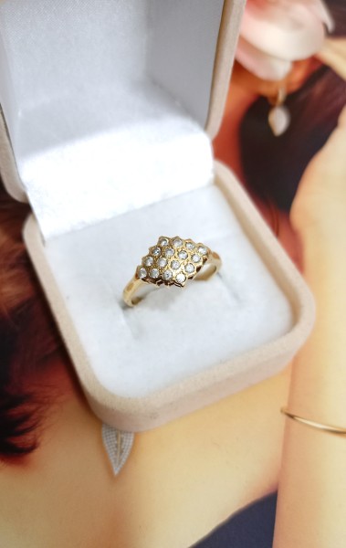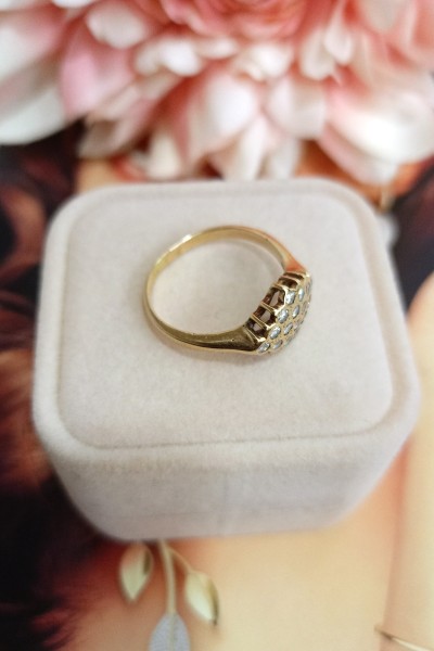 Przedmiotem sprzedaży jest pierścionek wykonany z 14-karatowego(p.585), żółtego złota.