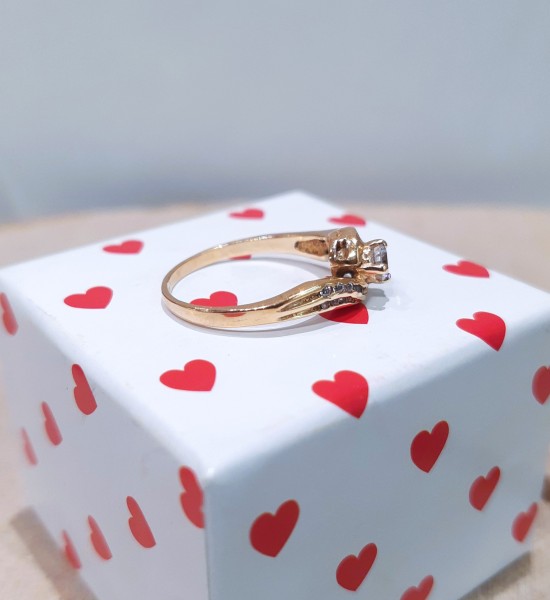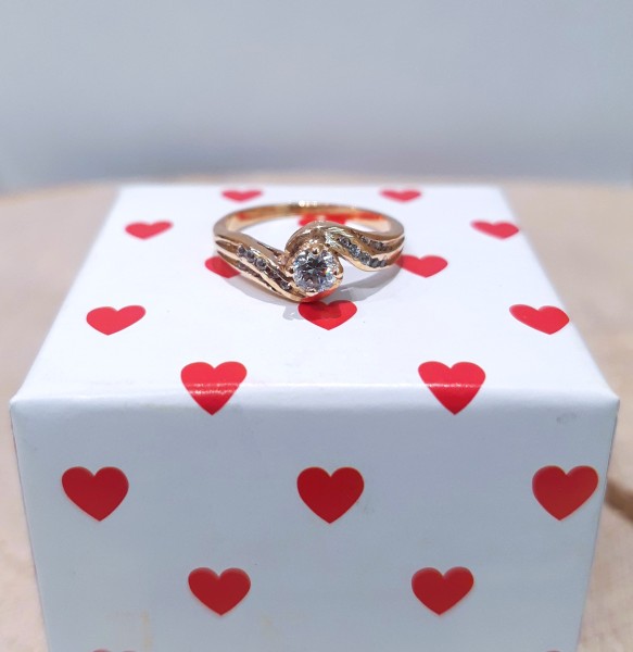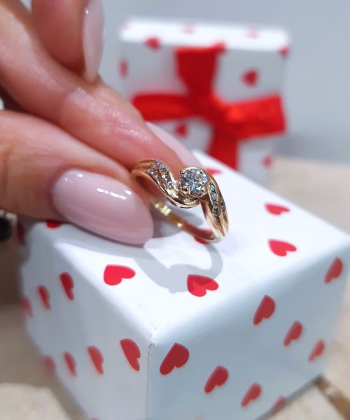 Przedmiotem sprzedaży jest pierścionek wykonany z 14-karatowego(p.585), żółtego złota.