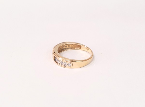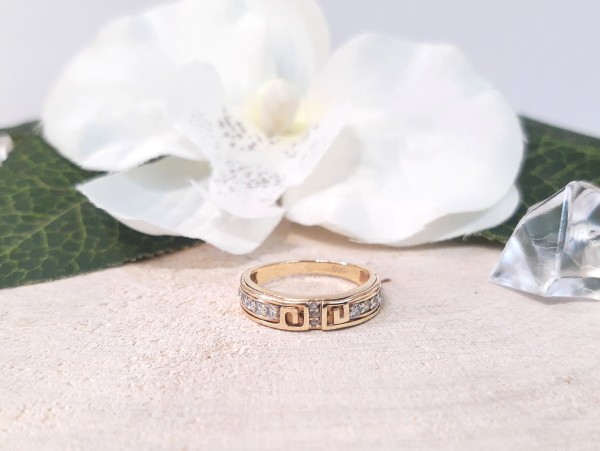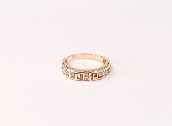 Złoty pierścionek p.585/2,47g z greckim wzorem i cyrkoniami al.14