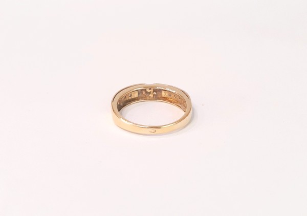 Przedmiotem sprzedaży jest pierścionek wykonany z 14-karatowego(p.585), żółtego złota.