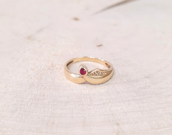 Przedmiotem sprzedaży jest pierścionek, wykonany z 14-karatowego (p.585), żółtego złota.