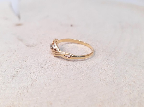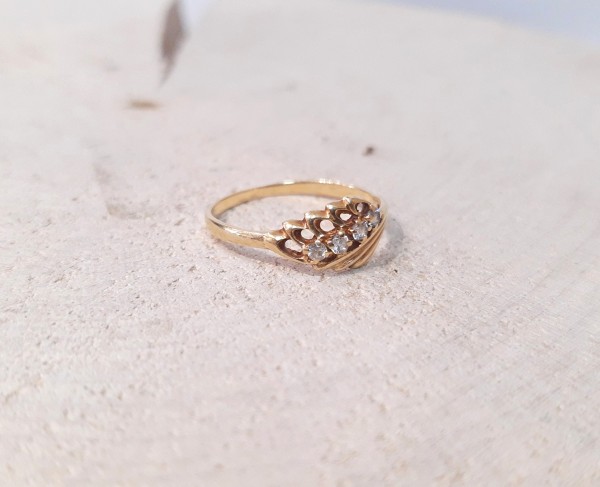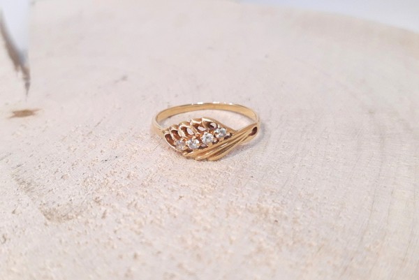 Przedmiotem sprzedaży jest pierścionek z cyrkoniami wykonany z 14-karatowego(p.585)żółtego złota.