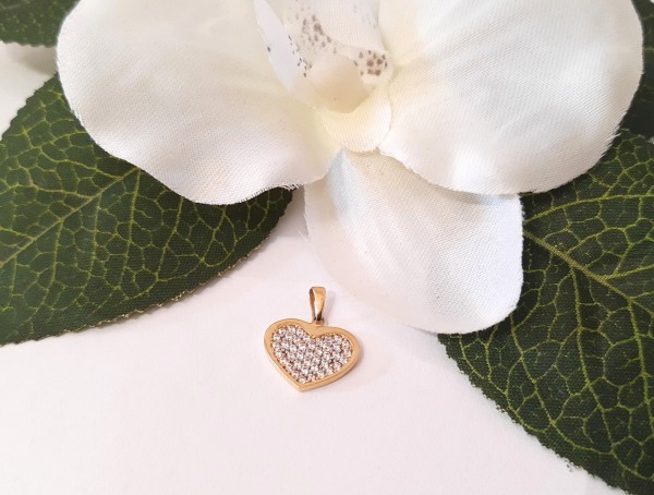 Kształt nadany zawieszce to serce zdobione cyrkoniami.