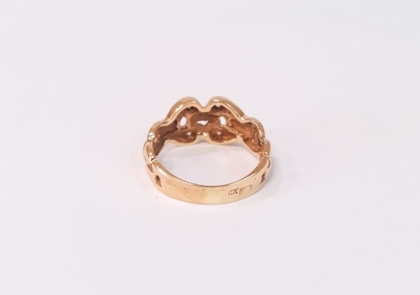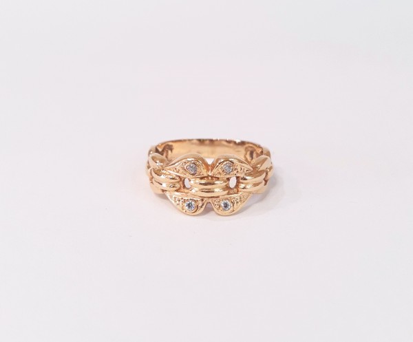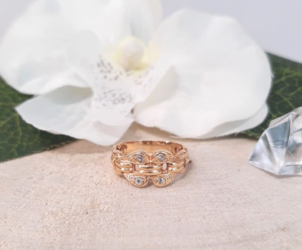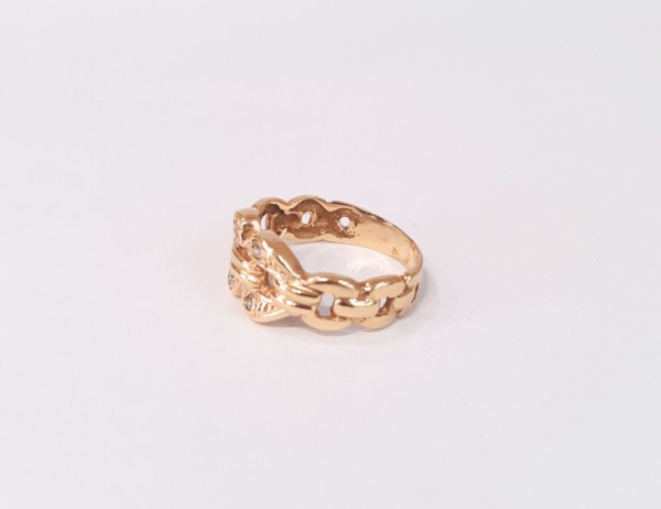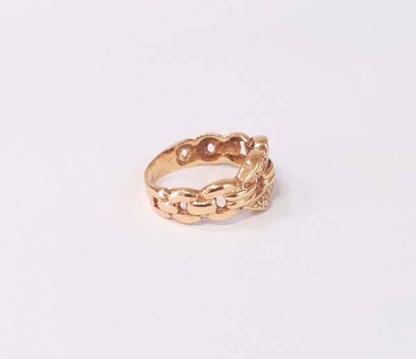 Przedmiotem sprzedaży jest pierścionek wykonany z 14-karatowego(p.585), różowego złota.