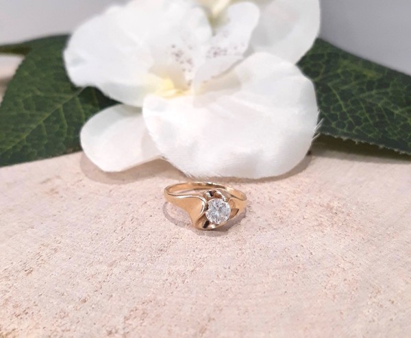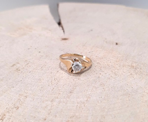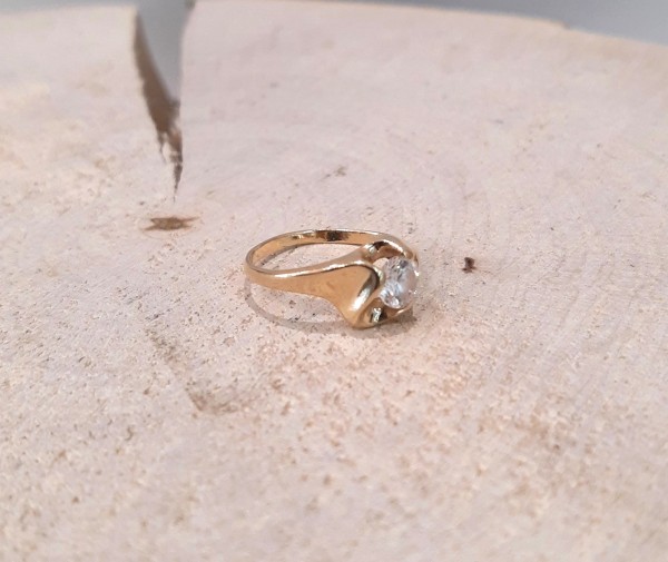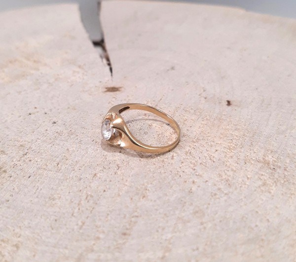 Przedmiotem sprzedaży jest pierścionek z cyrkonią wykonany z 14-karatowego(p.585), żółtego złota.