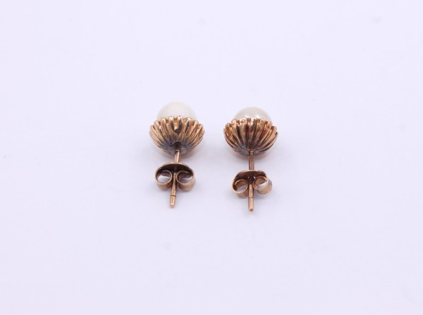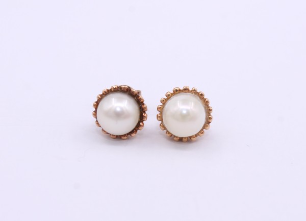Przedmiotem sprzedaży są kolczyki wykonane z 14-karatowego(p.585), żółtego złota,ozdobione na froncie perełką.