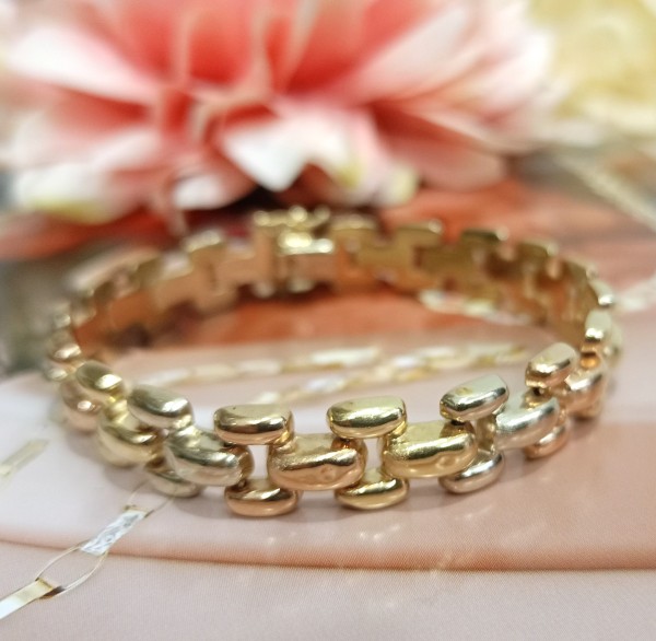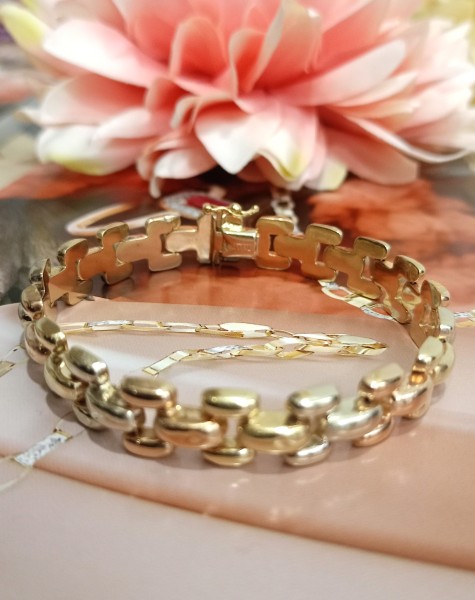 Przedmiotem sprzedaży jest damska bransoletka wykonana z 14-karatowego (p.585) żółtego,białego i różowego złota.
