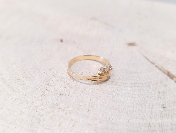 Przedmiotem sprzedaży jest pierścionek wykonany z 14-karatowego(p.585), żółtego złota.