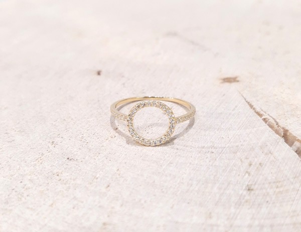 Przedmiotem sprzedaży jest pierścionek, wykonany z 14-karatowego (p.585), żółtego złota.