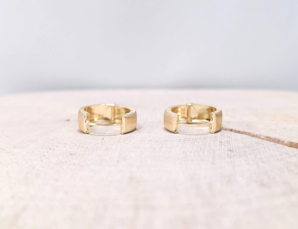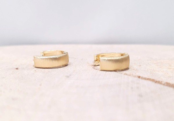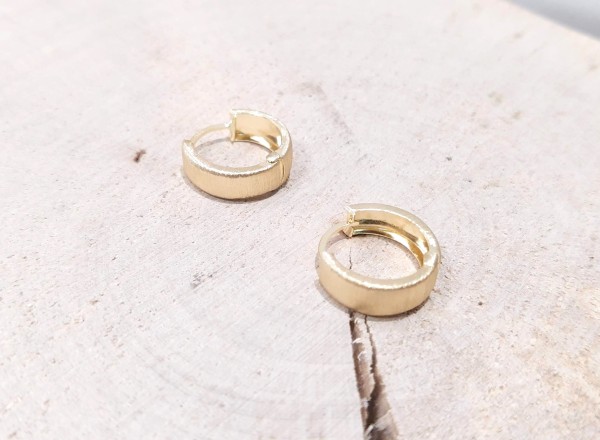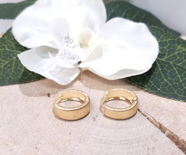 Przedmiotem sprzedaży są kolczyki ,satynowe kółka wykonane z 14-karatowego (p.585), żółtego złota.