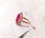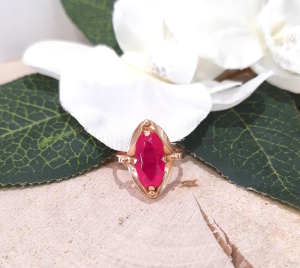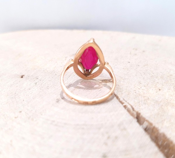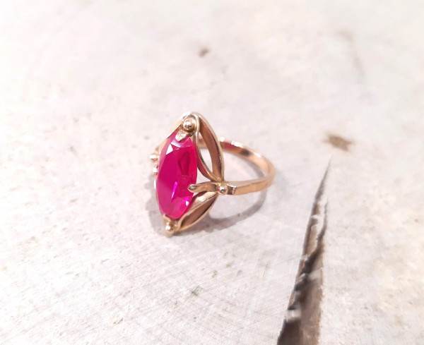 Przedmiotem sprzedaży jest pierścionek w stylu retro z różowym kamieniem, wykonany z 14-karatowego (p.585),żółtego złota.