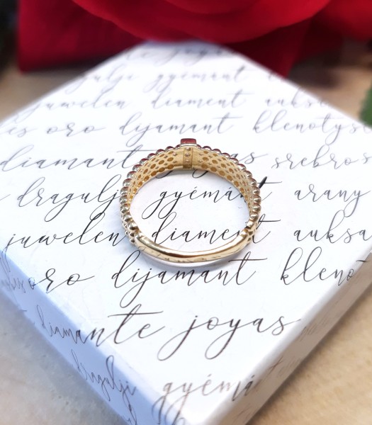 Front pierścionka ozdobiony jest maleńkimi cyrkoniami - jak na załaczonych zdjęciach.