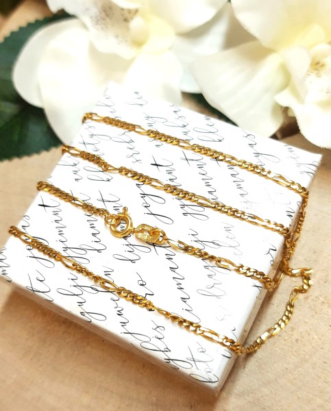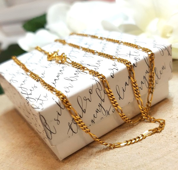 Przedmiotem sprzedaży jest łańcuszek o splocie Figaro ,wykonany z 14-karatowego (p.583) żółtego złota.