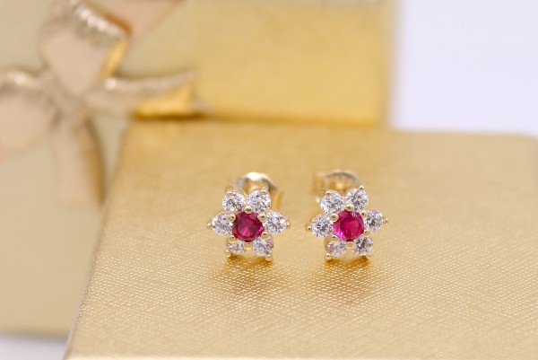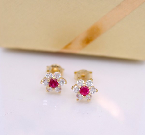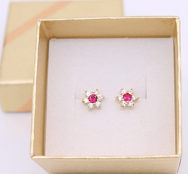 Złote kolczyki p.585/1,53g -kwiatuszki, wkrętki z cyrkoniami ŁS