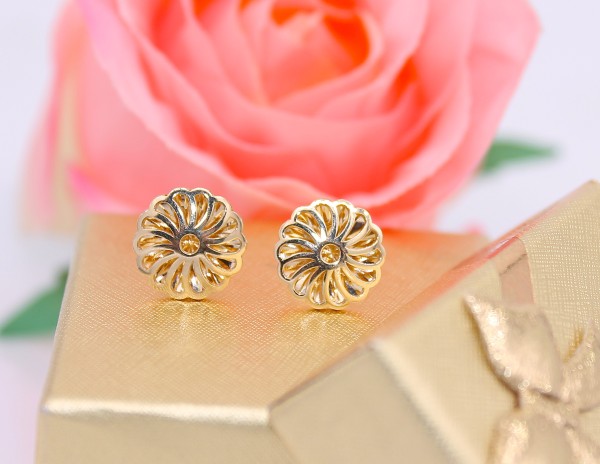 Przedmiotem sprzedaży są kolczyki ,wykonane z 14-karatowego (p.585), żółtego złota - wkrętki kwiatuszki.