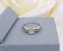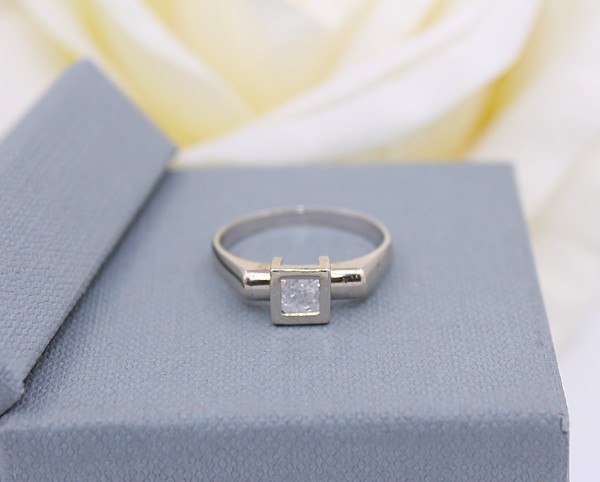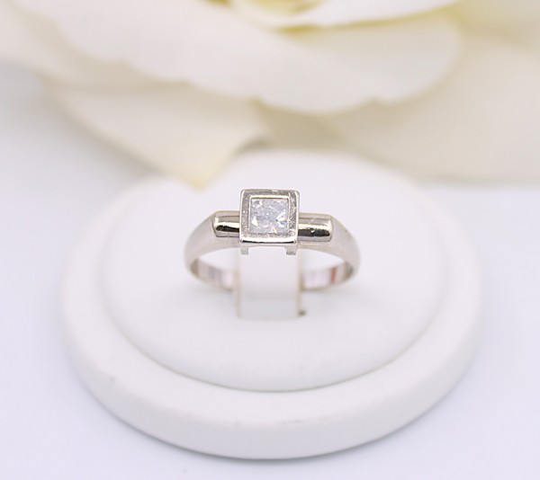 Przedmiotem sprzedaży jest pierścionek wykonany z 14-karatowego(p.585),białego złota, ozdobiony na froncie cyrkonią.