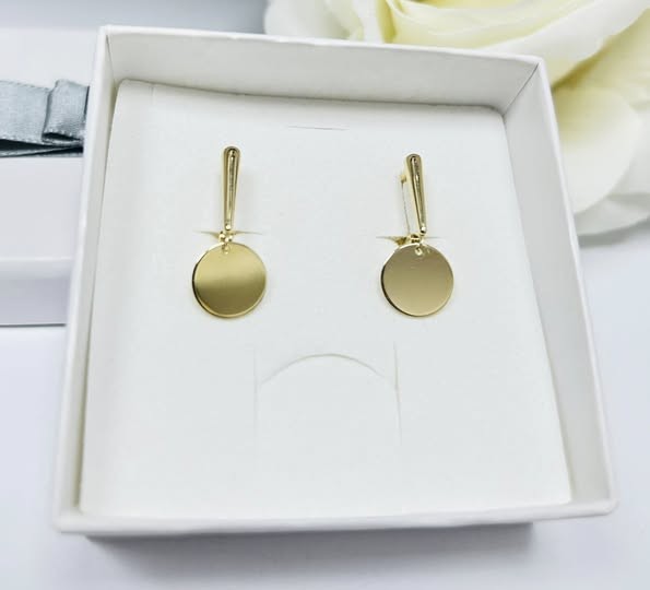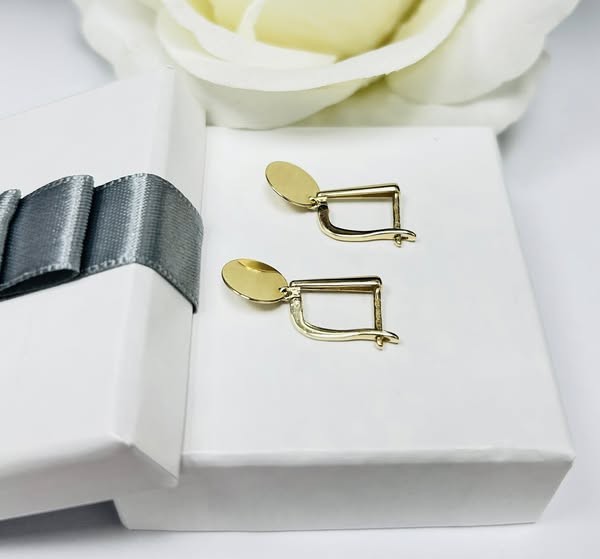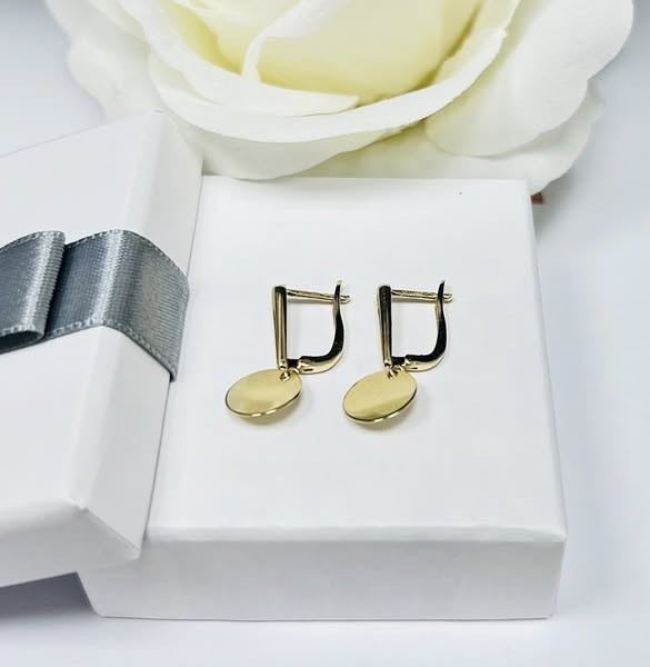Przedmiotem sprzedaży są kolczyki, wykonane z 14-karatowego(p.585), żółtego złota - wiszące kółczeczka.
