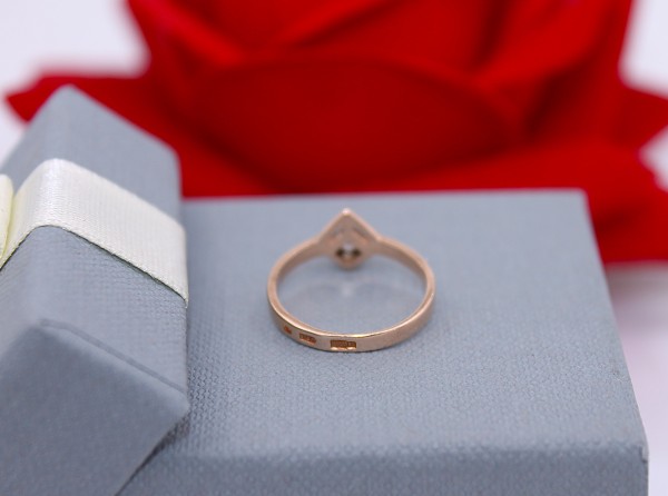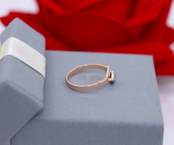 Przedmiotem sprzedaży jest pierścionek z cyrkonią,wykonany z 14-karatowego(p.583), różowego złota.