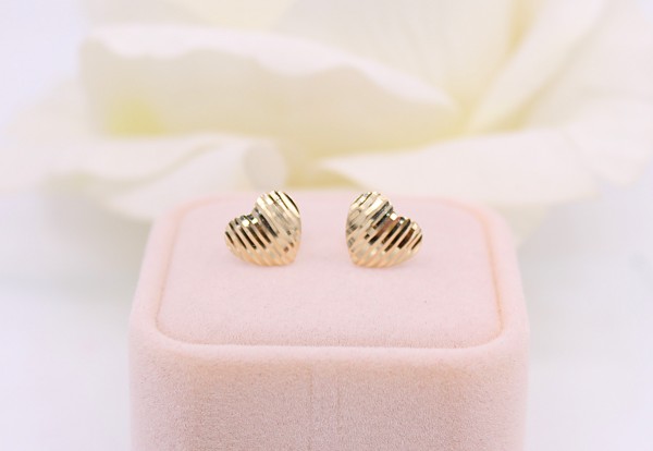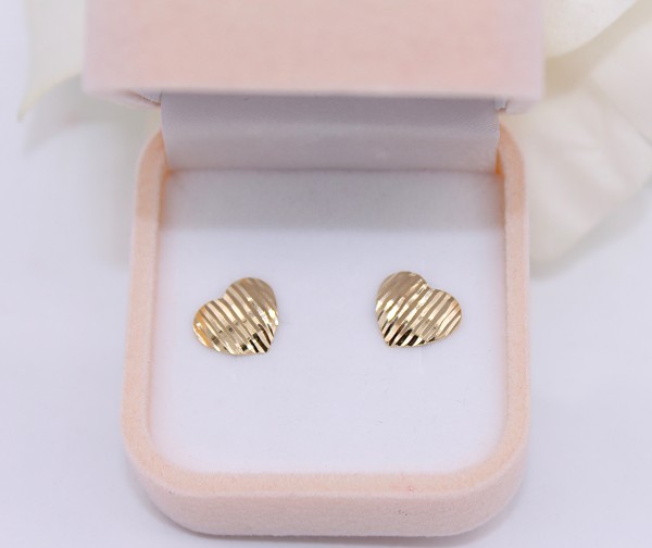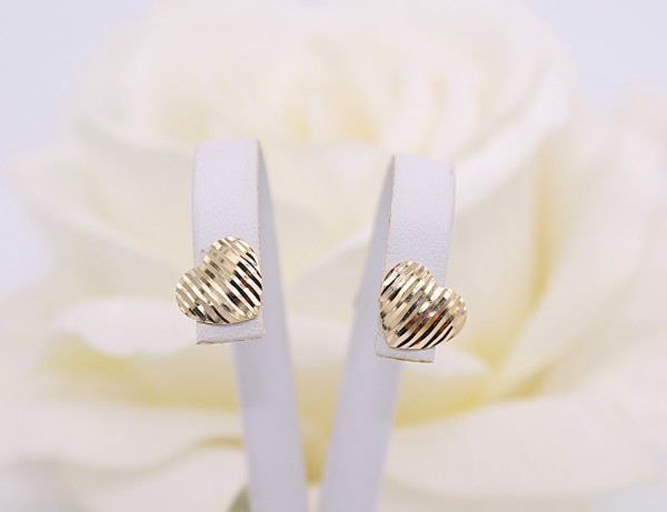Przedmiotem sprzedaży są kolczyki ,wykonane z 14-karatowego (p.585), żółtego złota - serduszka grawerowane.