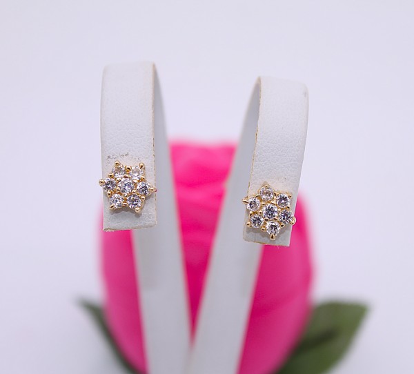 Przedmiotem sprzedaży są kolczyki ,wykonane z 14-karatowego (p.585), żółtego złota - kwiatuszki wysadzane cyrkoniami.