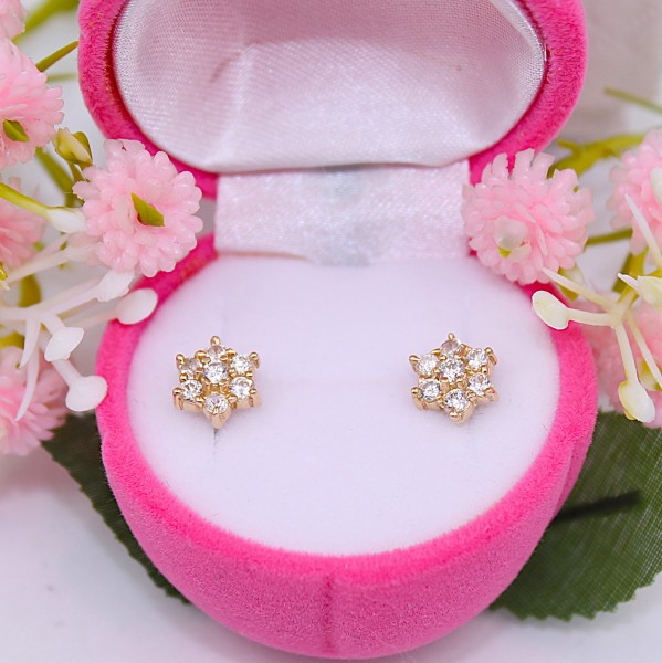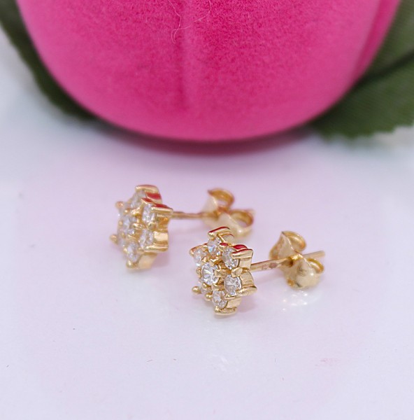 Złote kolczyki p.585/1,68g kwiatuszki z cyrkoniami ŁS