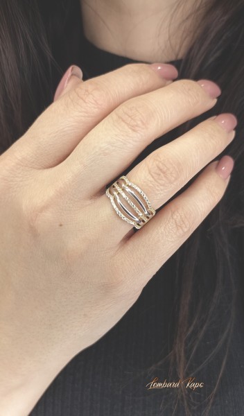 Przedmiotem sprzedaży jest pierścionekz szerokim frontem, wykonany z 14-karatowego (p.585), żółtego złota.