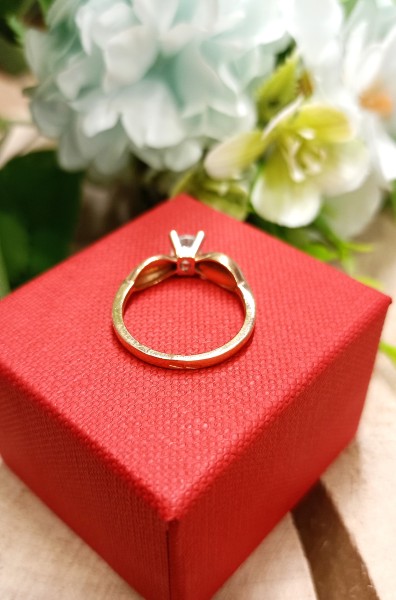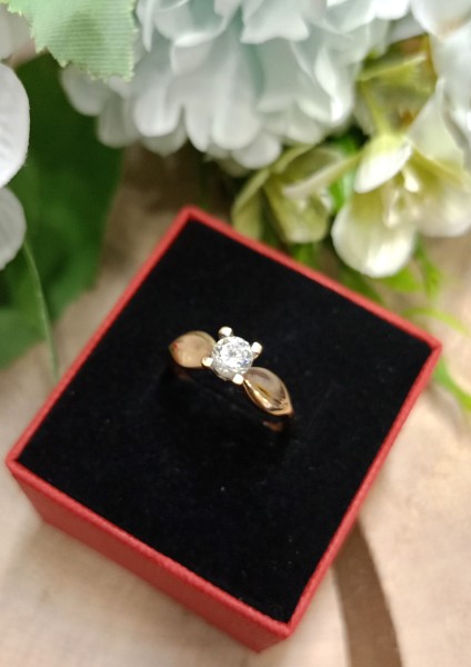 Przedmiotem sprzedaży jest pierścionek z cyrkonią wykonany z 14-karatowego(p.585), różowego złota.