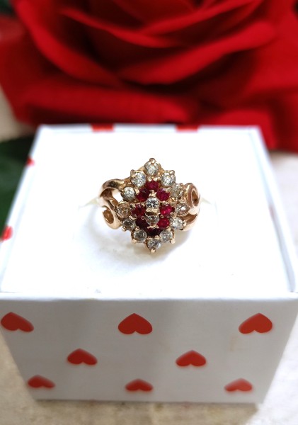 Przedmiotem sprzedaży jest złoty pierścionek wykonany z 14-karatowego (p.585) z różowego złota.