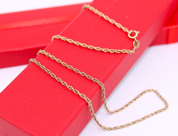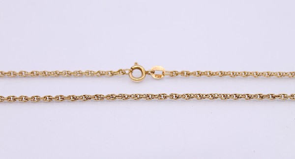 Przedmiotem sprzedaży jest łańcuszek, wykonany z 14-karatowego (p.585), żółtego złota.