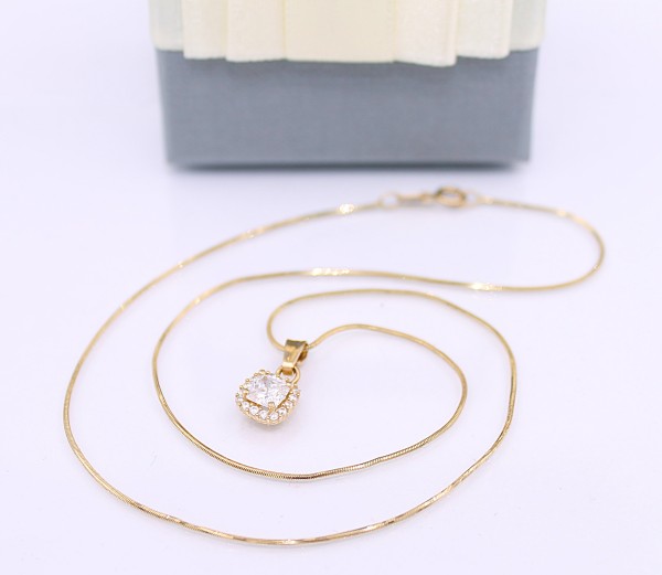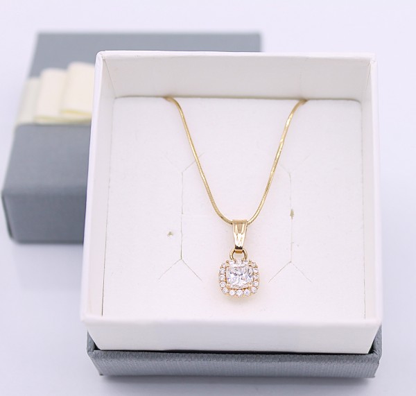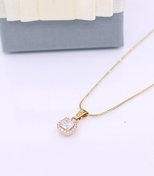 Przedmiotem sprzedaży jest łańcuszek,wykonany z 14-karatowego (p.583) żółtego złota z zawieszką - wysadzaną cyrkoniami.