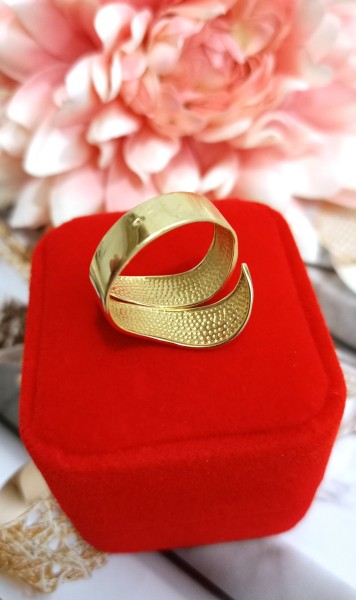 Przedmiotem sprzedaży jest pierścionek wykonany z 14-karatowego (p.585), żółtego złota.