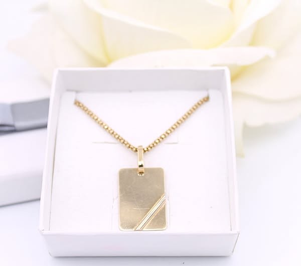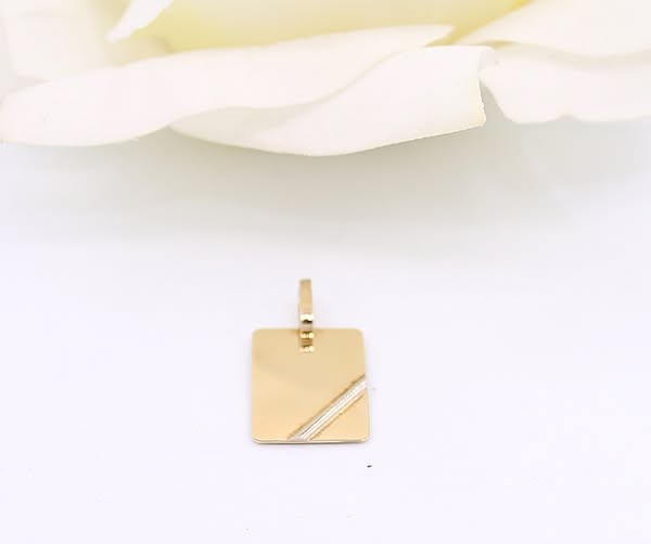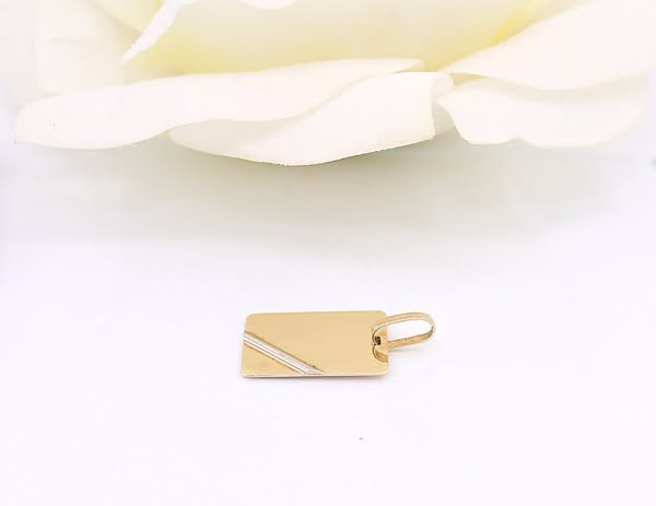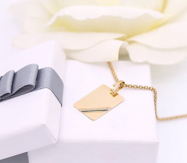 Przedmiotem sprzedaży jest zawieszka - blaszka, wykonana z 14-karatowego (p.585), żółtego i białego złota.
