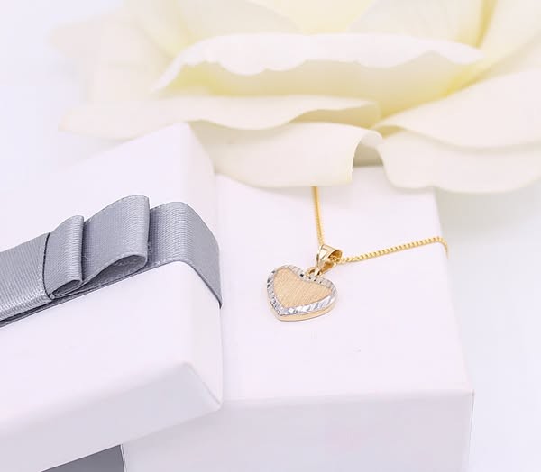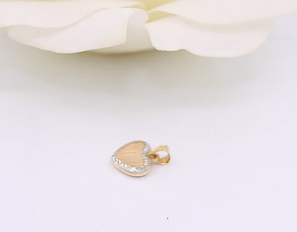 Przedmiotem sprzedaży jest zawieszka, wykonana z 14-karatowego (p.585), żółtego i białego złota - serduszko.