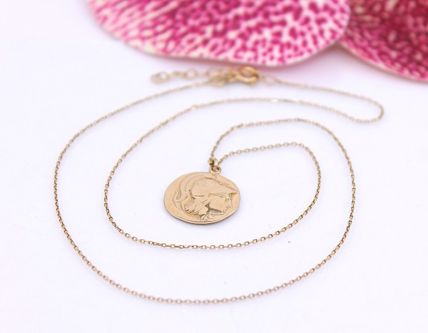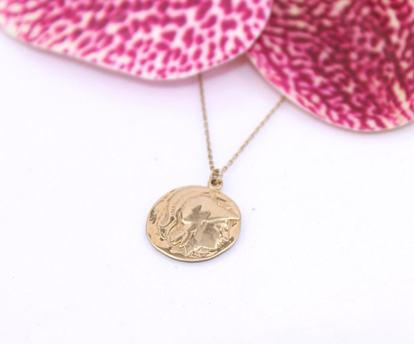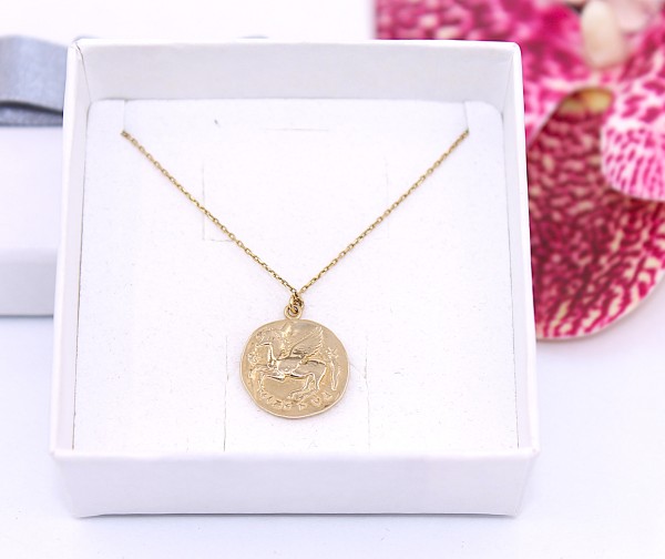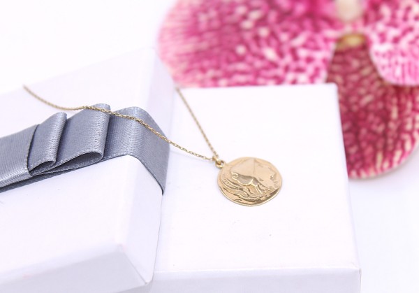 Przedmiotem sprzedaży jest łańcuszek-celebrytka z zawieszką, wykonana z 14-karatowego (p.585), żółtego złota.