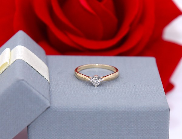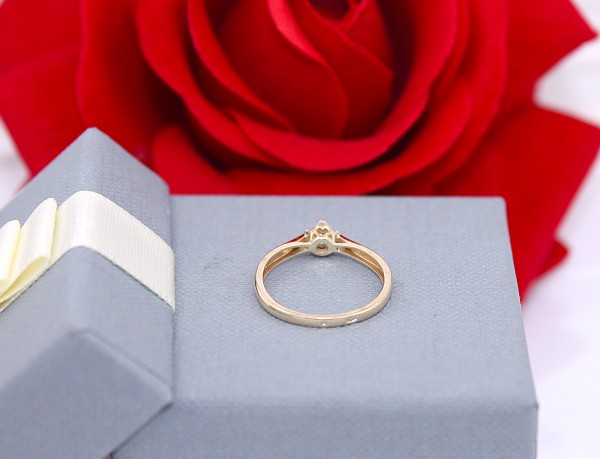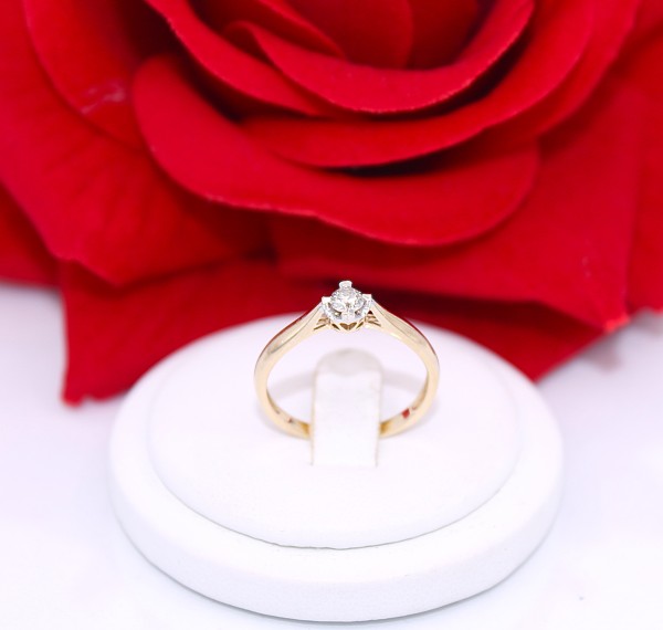 Przedmiotem sprzedaży jest pierścionek z brylantem,wykonany z 14-karatowego (p.585) żółtego złota.