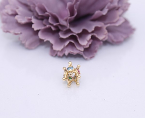 Przedmiotem sprzedaży jest zawieszka charms do bransoletki - z kolorowymi kamieniami, wykonana z 14-karatowego (p.585), żółtego złota.