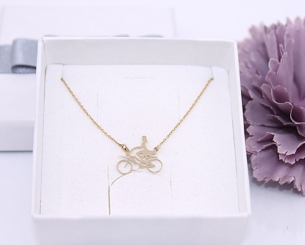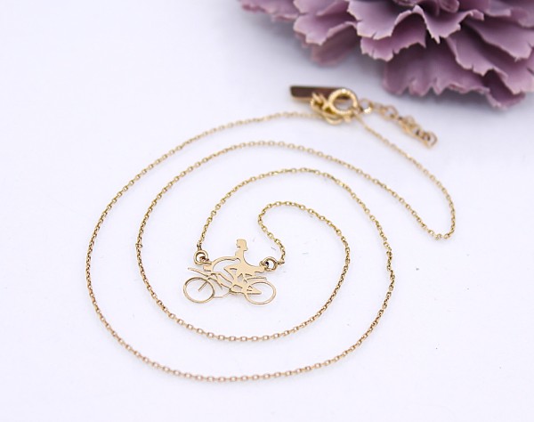 Przedmiotem sprzedaży jest łańcuszek-celebrytka z zawieszką - rower, wykonana z 14-karatowego (p.585), żółtego złota.