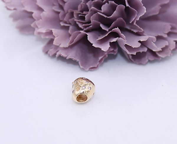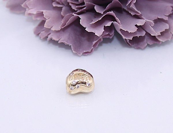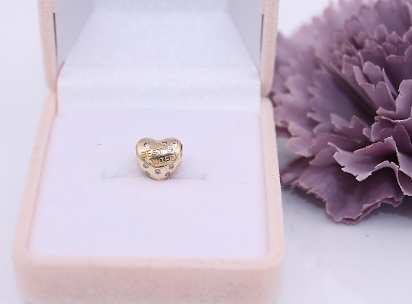 Przedmiotem sprzedaży jest zawieszka charms do bransoletki - serduszko z napisem "BEST WIFE" i cyrkoniami , wykonana z 14-karatowego (p.585), żółtego złota.