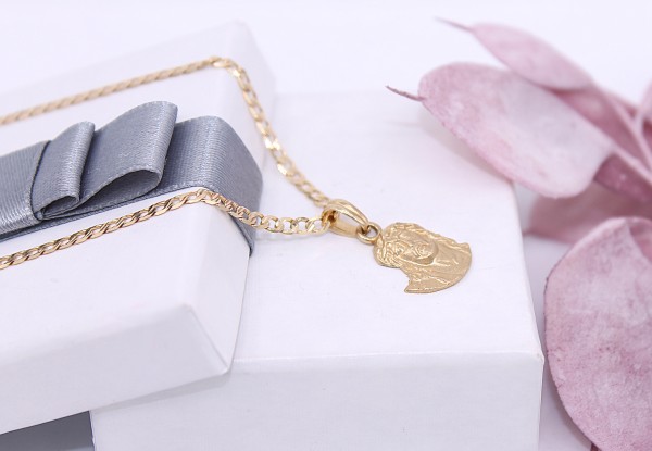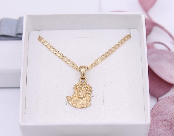 Przedmiotem sprzedaży jest zawieszka, wykonana z 14-karatowego (p.585), żółtego złota z wizerunkiem Jezusem.