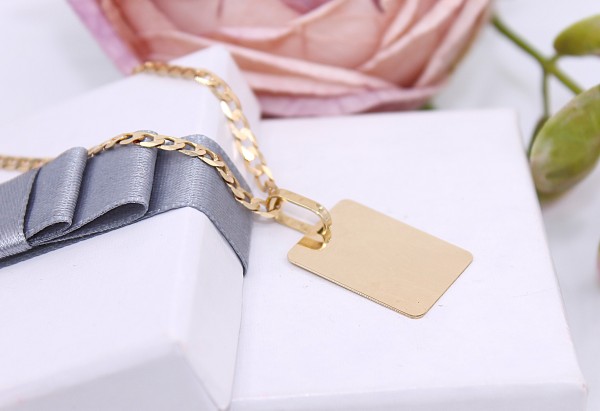 Przedmiotem sprzedaży jest zawieszka - blaszka, wykonana z 14-karatowego (p.585), żółtego złota.