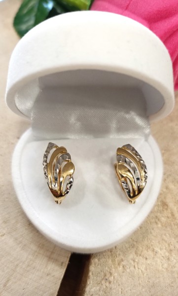 Przedmiotem sprzedaży są kolczyki wykonane z 14-karatowego (p.585), żółtego i białego złota.