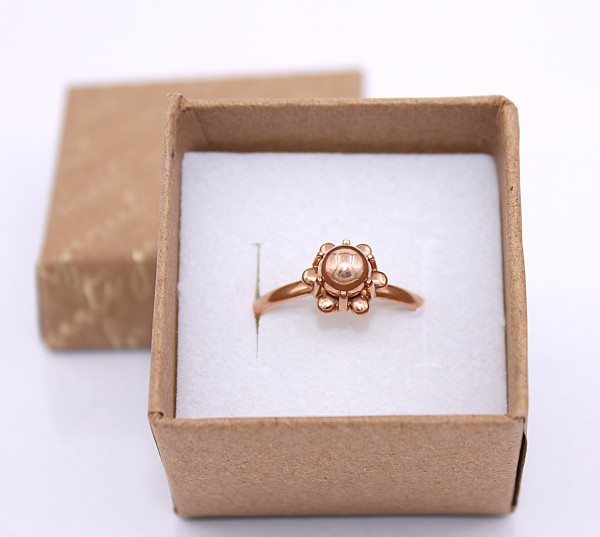 Przedmiotem sprzedaży jest pierścionek,wykonany z 14-karatowego (p.585), różowego złota.
