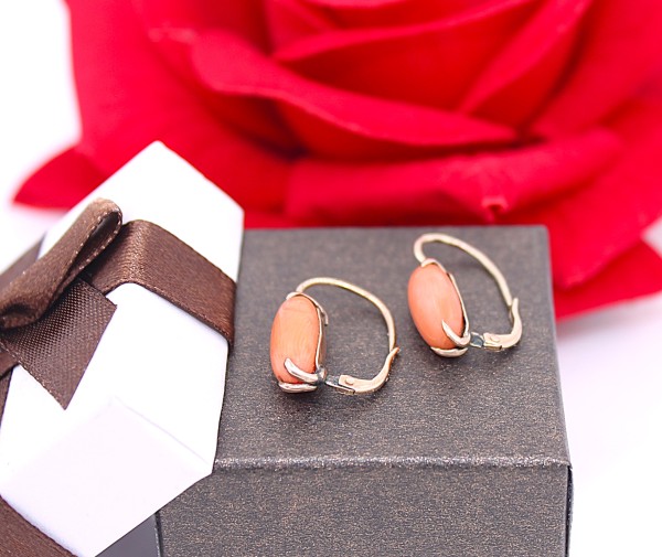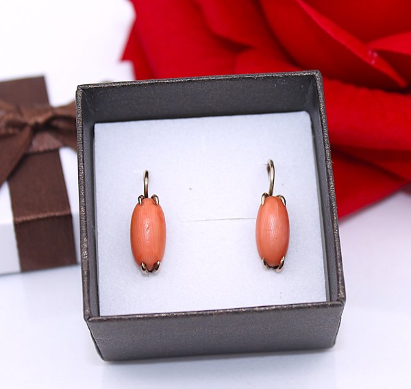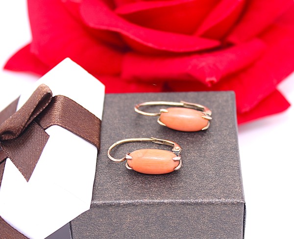 Przedmiotem sprzedaży są kolczyki wykonane z 6 karatowego(p.333), różowego złota, ozdobione na froncie koralem.