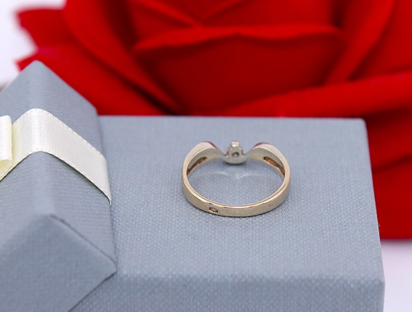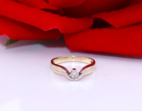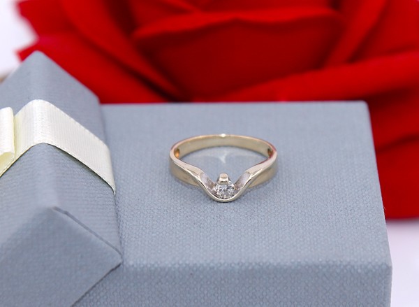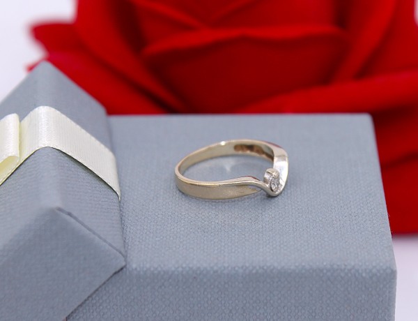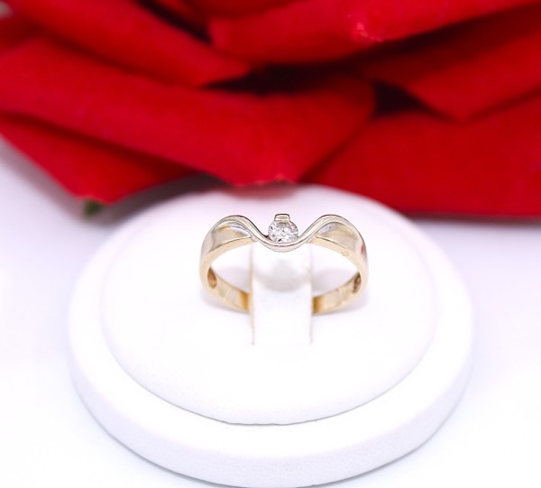 Przedmiotem sprzedaży jest pierścionek z małym brylantem, wykonany z 14-karatowego (p.585) żółtego złota.